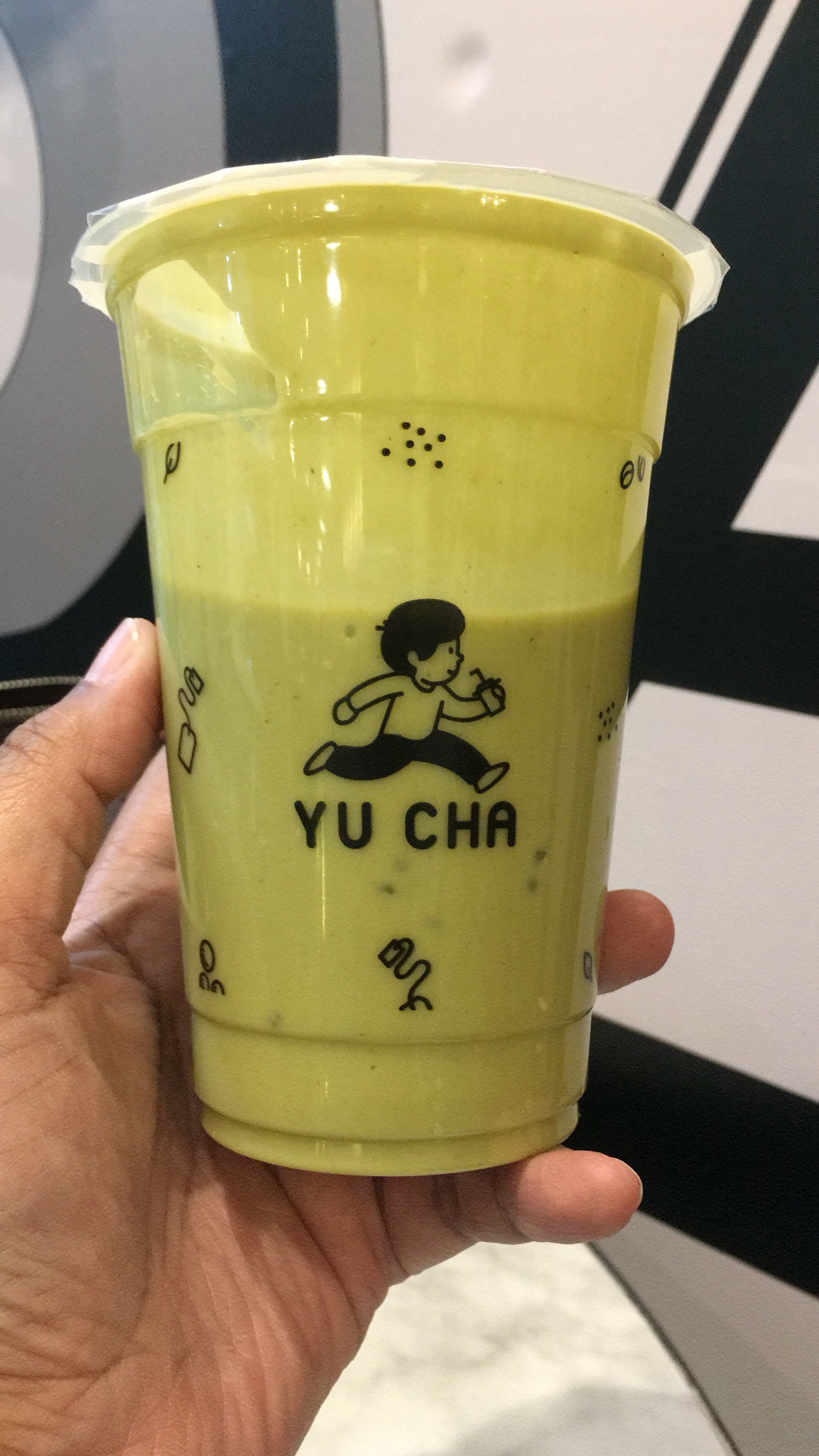 Sementara di foto atas itu minuman merk Yu-Cha yang isinya: alpukat + air kelapa + daging buah kelapa. Tanpa gula, tanpa es. Rasanya asin asik enak. Bayangin sendiri lah yaaaa