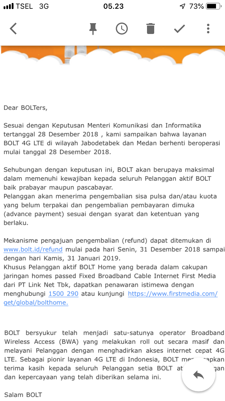 Menilik ke operasinya layanan data ini, mestinya BOLT bisa survive karena tren penggunaan online berbasis data terus meningkat pesat tiap tahunnya. Kebutuhan pasar seperti dibiarkan saja, tidak ada pembenahan. Mereka tetap menjual tanpa memperbaiki layanan. Haduuuhh
