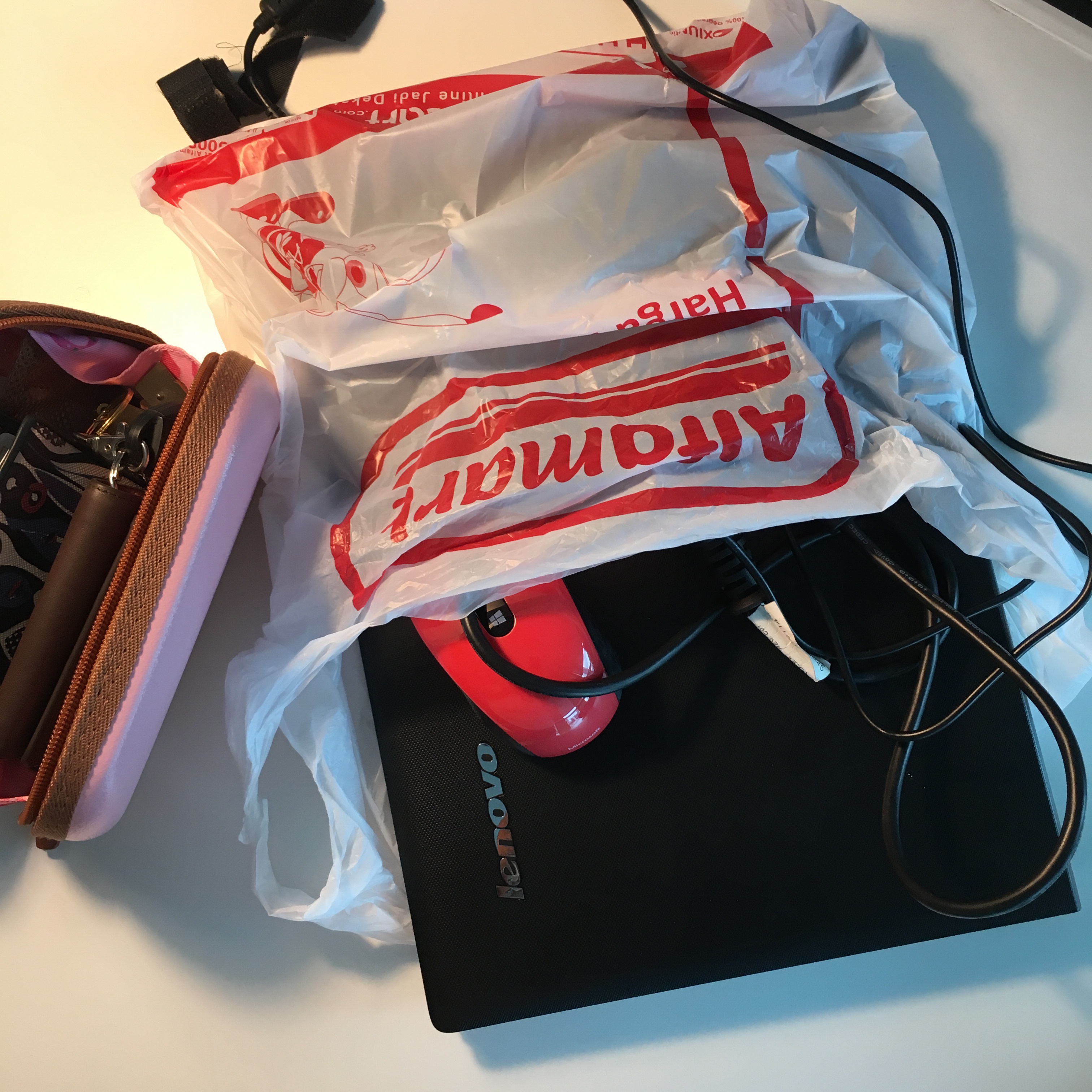 Sesuai dengan judulnya, laptop pun ditenteng pakai plastik!
