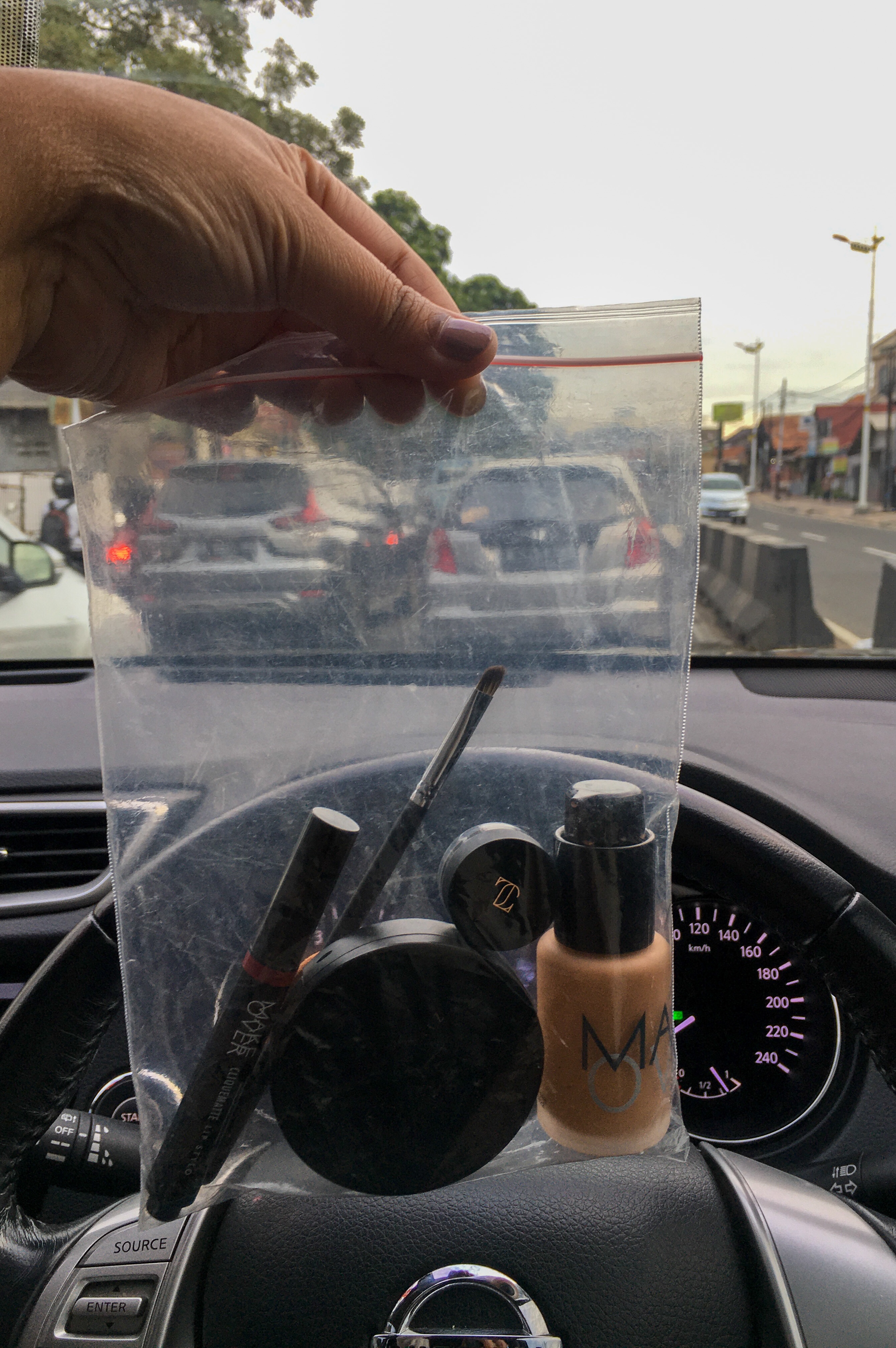 Dimulai kebiasaan ini kalau pas di bandara luar negeri (Manchester, london contohnya) yang mewajibkan penumpang memisahkan liquid & kosmetik yang ditempatkan dalam plastik transparan. Jadi saya pikir, supaya ngga ribet lanjutin aja terus!